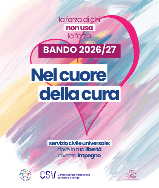 Diventa operatore di Servizio Civile Universale, puoi consultare il programma scaricando il PDF. Per sapere come iscriverti, puoi consultare il sito del CSV di Padova e Rovigo cliccando qui.